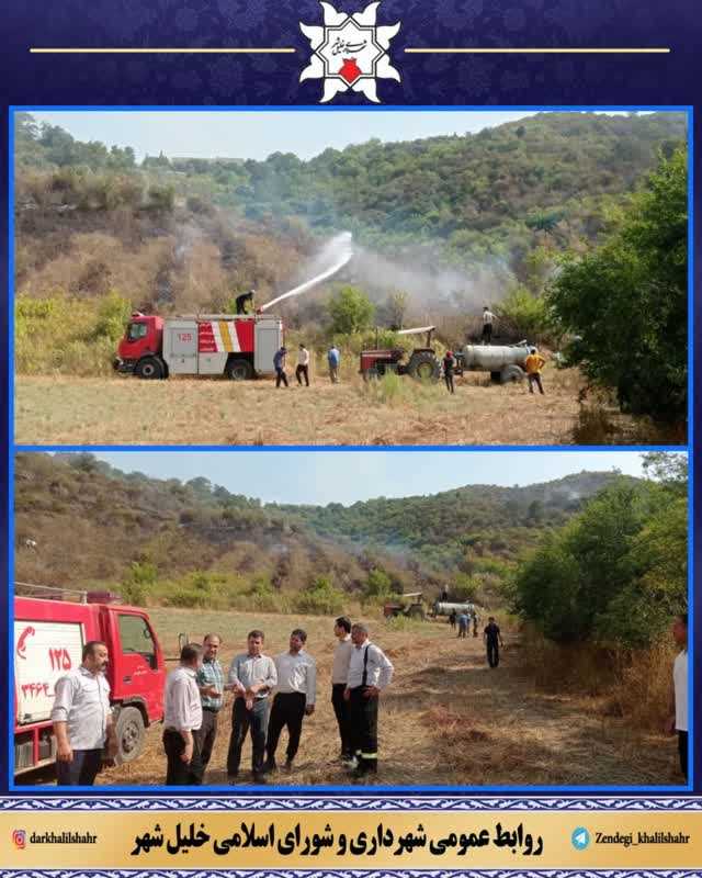 عملیات اطفاء حریق با حضور آتش نشانی شهرداری خلیل شهر، آتش نشانی شهرداری بهشهر، آتش نشانی شهرداری گلوگاه، هلال احمر شهرستان بهشهر، اداره منابع طبیعی شهرستان بهشهر و نیروهای مردمی و بسیجی در محل حادثه با موفقیت انجام گردید.