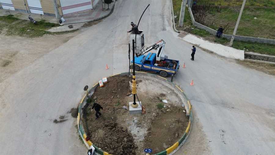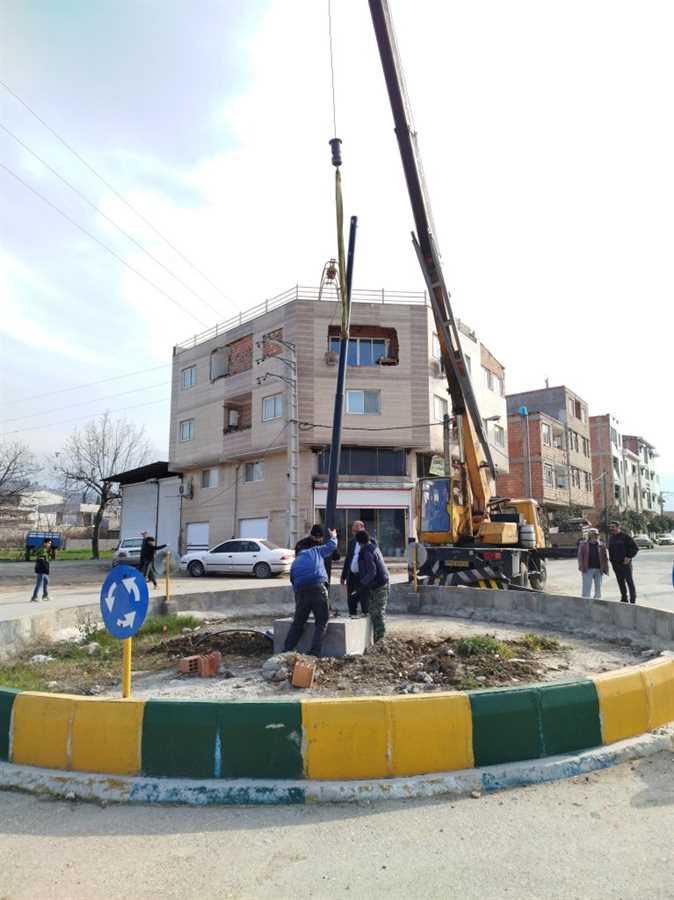 نصب پایه چراغ روشنایی میدان شهید مسلمی کلاک
